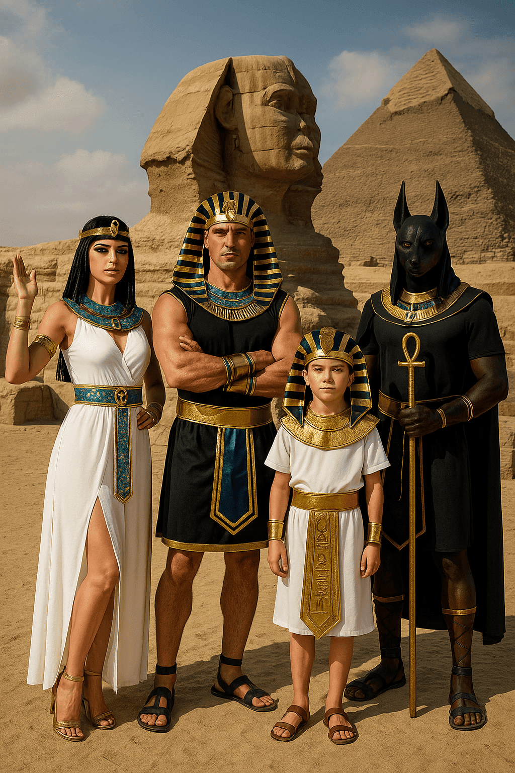 Los disfraces de egipcios para niños son muy utilizados en actividades escolares, presentaciones de historia o Carnaval. Pueden representar a pequeños faraones, escribas, momias o incluso a dioses del antiguo Egipto como Anubis o Horus. Son trajes didácticos, cómodos y visualmente muy llamativos.